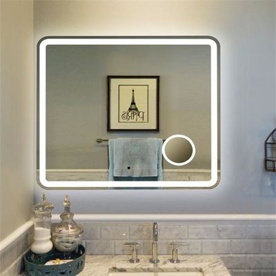 شاشة لمسة مستطيلة مدعومة مرآة حمام مضاءة مع مرآة مدعومة